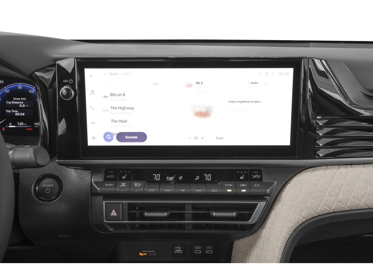 - Radio: 12.3" Toyota Audio Multimedia -inc: touchscreen, USB-A media port, hands-free phone capability and music streaming via Bluetooth® wireless technology, SiriusXM 3-month trial subscription, 6-speaker audio system, wireless Apple CarPlay compatibility and wireless Android Auto compatibility
